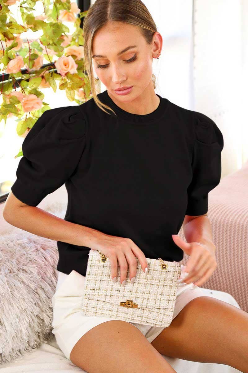 - Crew neck women's sweater top - Short puff sleeve ribbed hem - Charming elbow-length sleeves - Pullover style - Crafted from a midweight knit to take you from the office to sunny outings - You can pair this casual sweater top under a jacket, with jeans, leggings - Spring, Summer, Pre-fall, Fall, Winter - Every day, Office Work, Game day, College, Football, Daily Life, Going Out... * Model is 5'8, 32-27-37, wearing SMALL