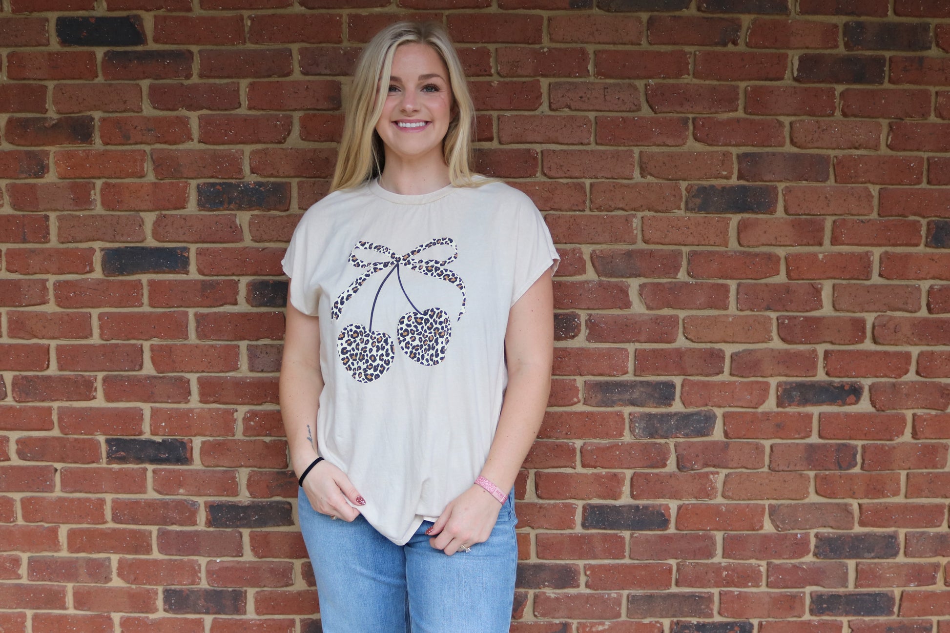 Mineral Wash Leopard Cherry Bow Graphic Sleeveless Top