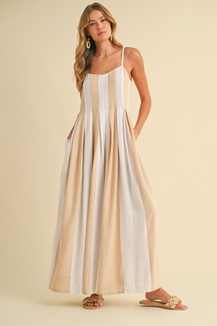 GAUZE STRIPED FLARED AND FLOWY SLEEVELESS JUMPSUIT