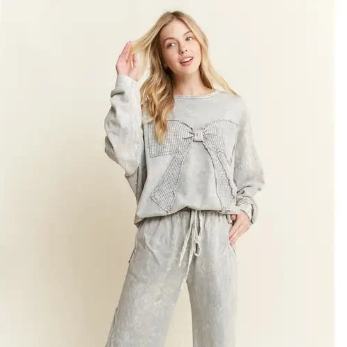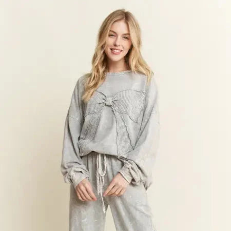 Mineral Washed Waffle Ribbon Bow Terry Top