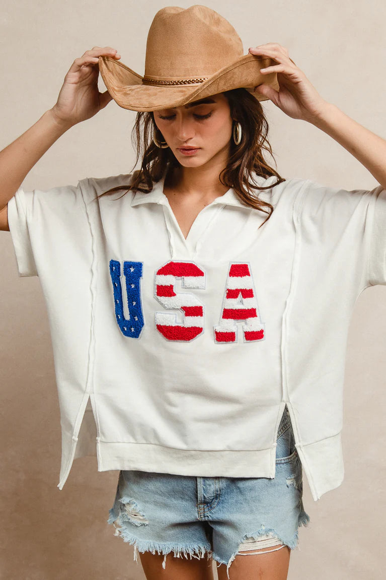 USA Collard Short Sleeve Pullover